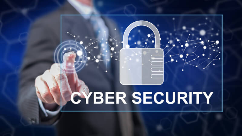 Man touching a cyber security concept